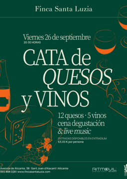 Disfruta de una velada única en la Finca Santa Luzia con una cuidada selección de 12 quesos artesanos y 5 vinos que maridarán a la perfección.